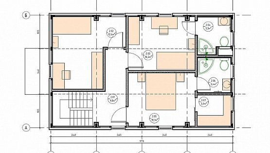 Двухэтажное здание площадью 118,31 м2 может вместить в себя семью из пяти человек. Такой дом имеет просторную кухню, совмещенную с гостиной и обеденной зоной на 1 этаже. Здесь же располагается гардеробная, прихожая, кладовая и санузел. Есть комната отдыха. Второй этаж отводится под три спальни. Здесь можно разместить два санузла, один – внутри спальни, второй – отдельно и совмещенный с ванной комнатой.